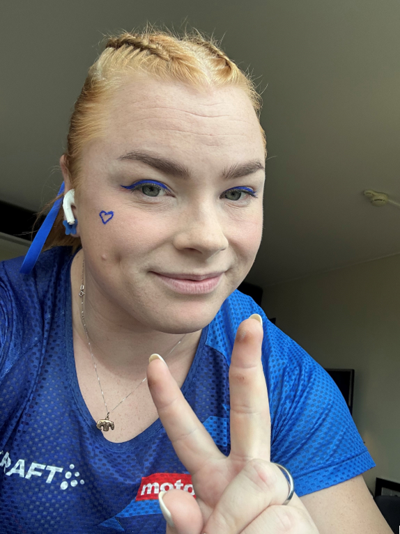 Finaaliaamuna selkä tuntui vihdoin suhteellisen normaalilta ja pystyin lähestymään kilpailua rennommilla fiiliksillä. Ensimmäinen heitto keskelle kenttää reilu 72 metriä, ei merkkiäkään varomisesta. Toinen oli reilu 73 metriä, mikä riittikin lopulta toiseen sijaan. Hauskasti heitettiin Siljan kanssa sentilleen sama tulos, pitipähän tämäkin päivä nähdä! Kisan loput heitot kärsivät pienistä tekniikkavirheistä, joten niistä ei mitattuja saatu. Voi olla, että edellisen päivän karsinta oli sen verran raskas, että mehut vain loppuivat kesken. Tunnelma kilpailuissa oli kuitenkin upea ja vaikean karsinnan jälkeen hopea maistui oikein hyvälle!