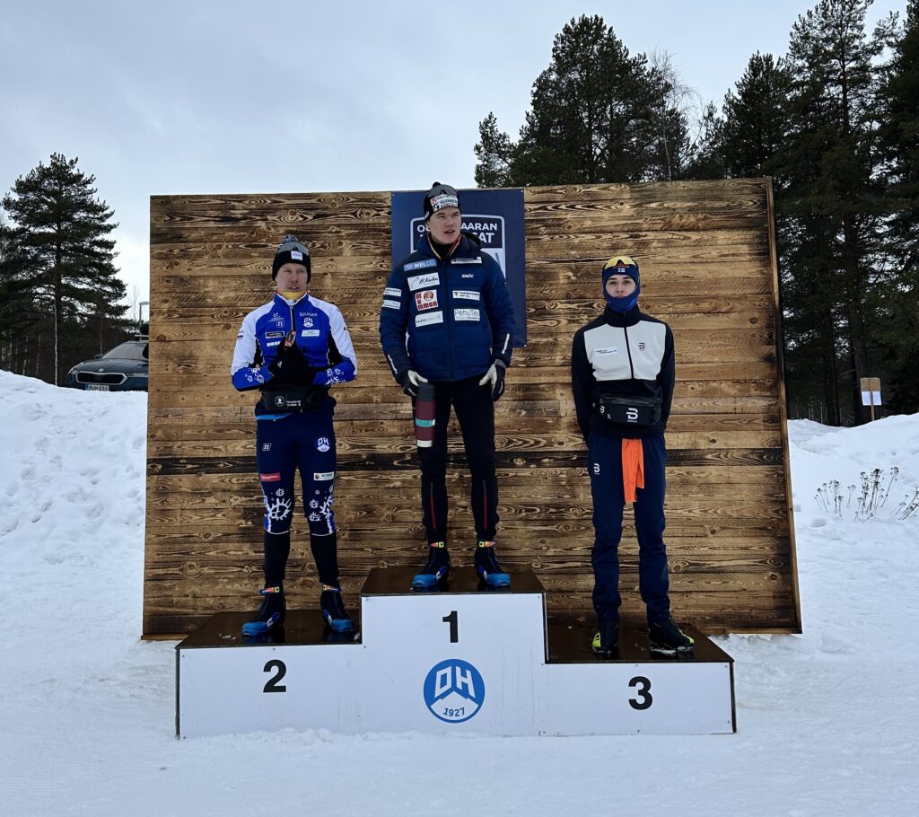 Kilpailupäivä koitti ja lähdin siihen samalla rauhallisuudella kuin Tampereella tammikuun alussa. Aika-ajo tökki odotetusti, kun edellinen teho oli Finlandia hiihdon 65km. Erissä pyrin hallitsemaan tilannetta keulasta, siinä onnistuen. Välierässä minulta katkesi sauva, mutta hiihdin erän voittoon katkenneella sauvalla. Tästä sisuuntuneena finaaliin kaava oli selvä. Kaasu pohjaan heti lähdöstä. Finaalissa oli kuitenkin vastassa astetta nopeampi kaveri Niilo Moilanen. Kovasta yrityksestä huolimatta en keulaan päässyt, ja nousuosuudelle lähdettiin Niilon komennuksella. Niilo pelasikin samaa strategiaa kuin minä, ja hallitsi finaalia keulasta. Laskuun lähdettäessä tuli miekkailua uuden tulokkaan, Jesse Kähärän kanssa ja Niilo ampui hieman irti meistä laskuun. Tässä kohtaa tiesin, että minun tehtäväni on varmistaa kakkospaikka, ja niin kävikin. Kisapassi oli leimattu.